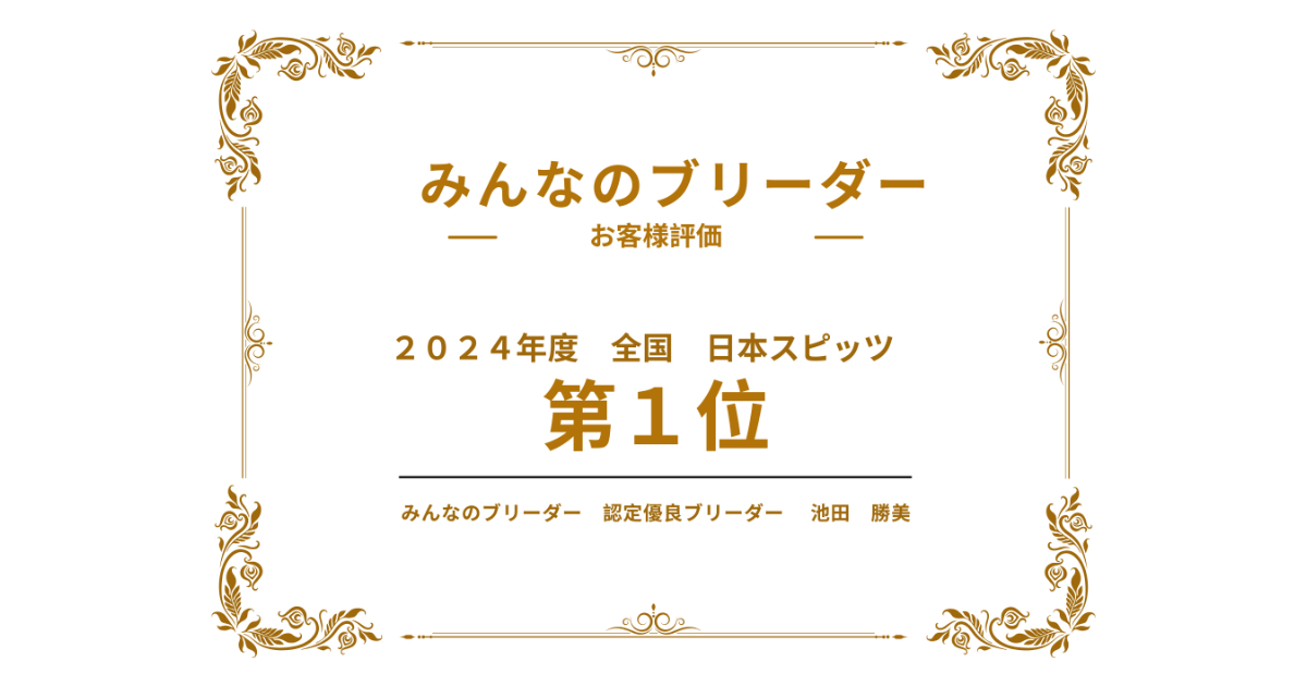 認定優良ブリーダー 受賞【 みんなのブリーダー 全国 日本スピッツ部門 お客様評価 第1位 】